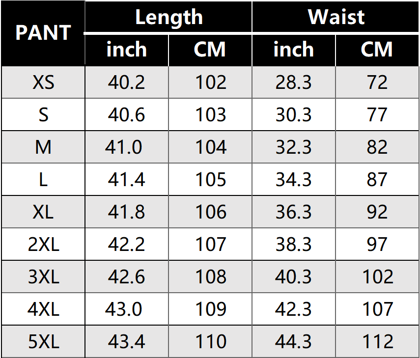 SIZE CHART: